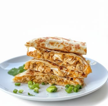 CHICKEN CUBES MONTARIJACK & CHEDDAR CHEESE PEPPERS BLACK OLIVES AND FLOUR TAORTILLA