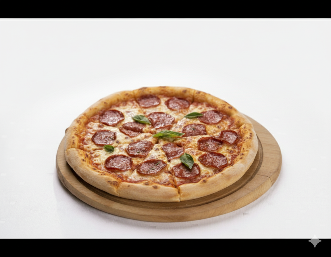 MOZZARELLA CHEESE, TOMATO SAUCE, PEPPERONI OREGANO & BASIL LEAF