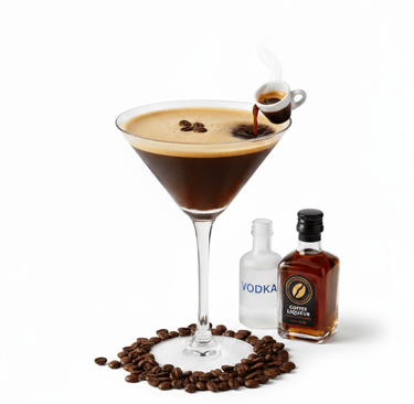 VODKA,COFFEELIQUOR,SINGLESHOTOFESSPRESO,COFFEEBEANS