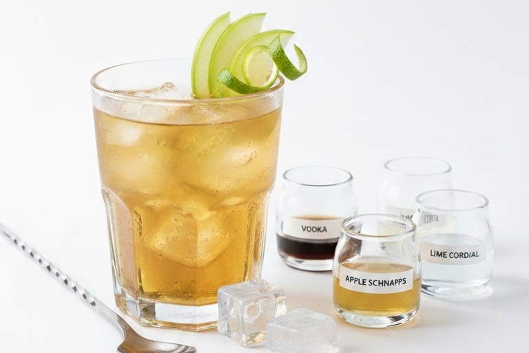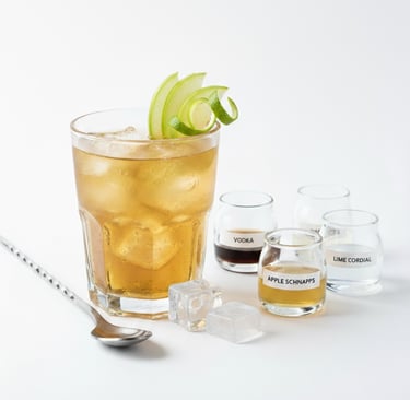 VODKA,AMARETTO,APPLESCHNAPPS,LIMECORDIAL